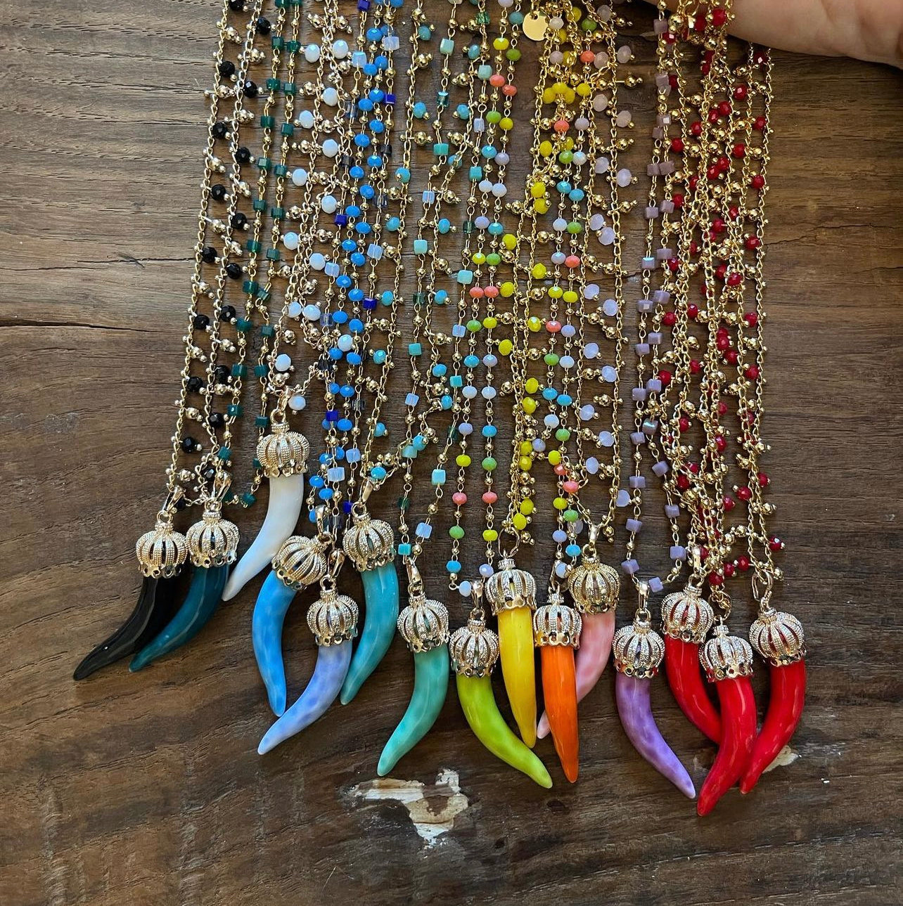 CORNO CALTAGIRONE CON PERLE ANNODATE