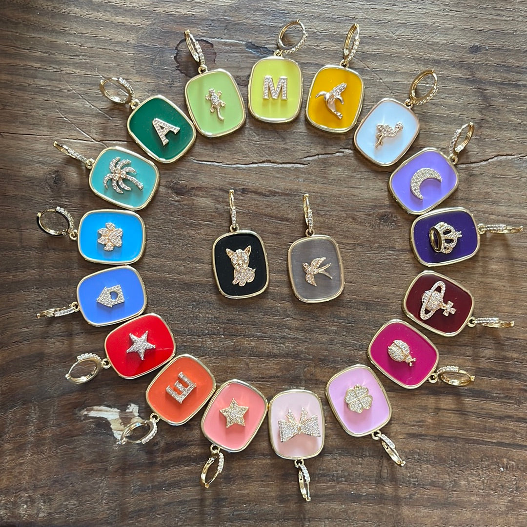 MONO ORECCHINO CON PIASTRINA COLORATA LETTERA O SIMBOLO