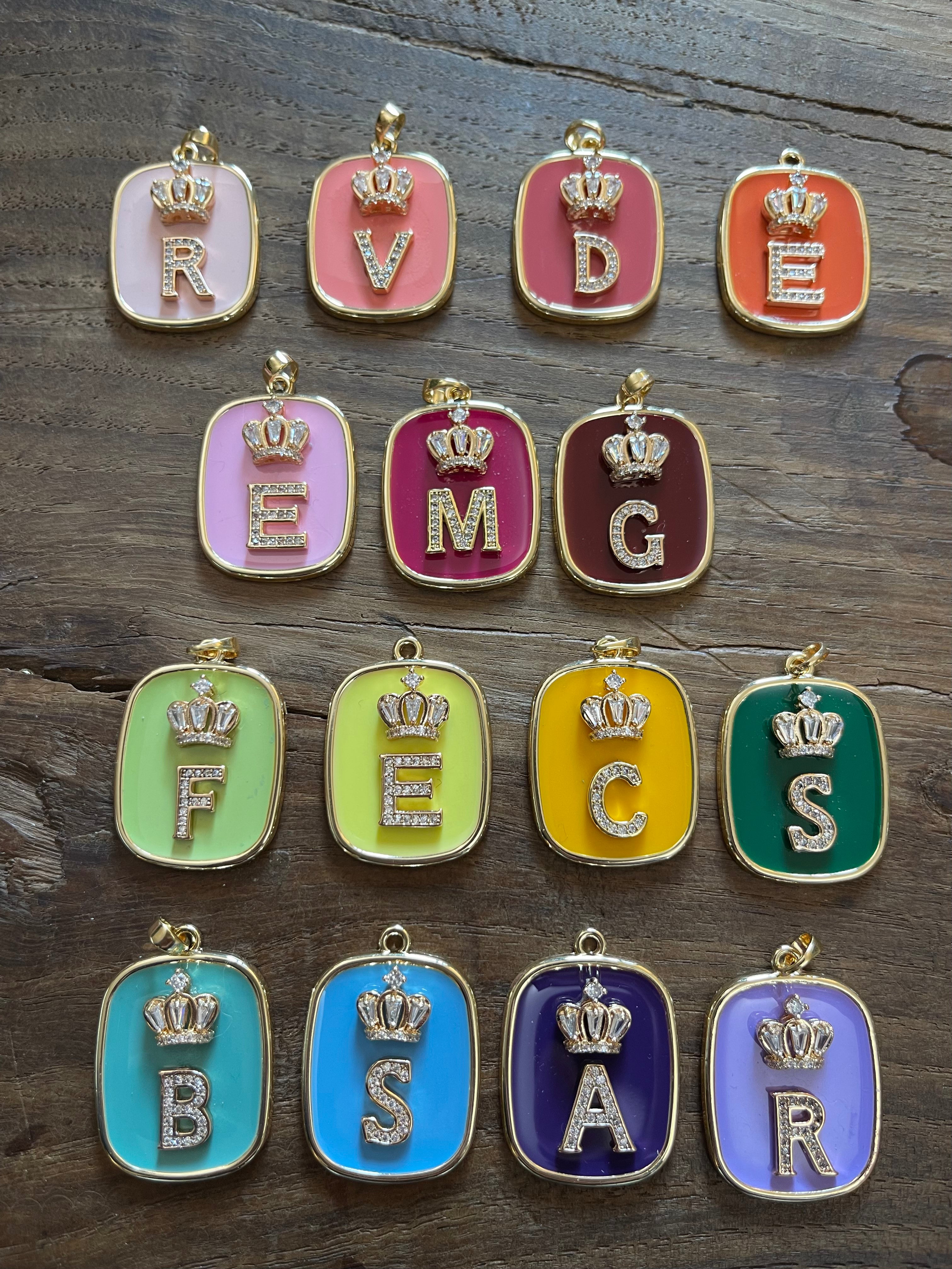 COLLANA CON PIASTRINA COLORATA LETTERA E CORONA/SIMBOLO/NUMERO