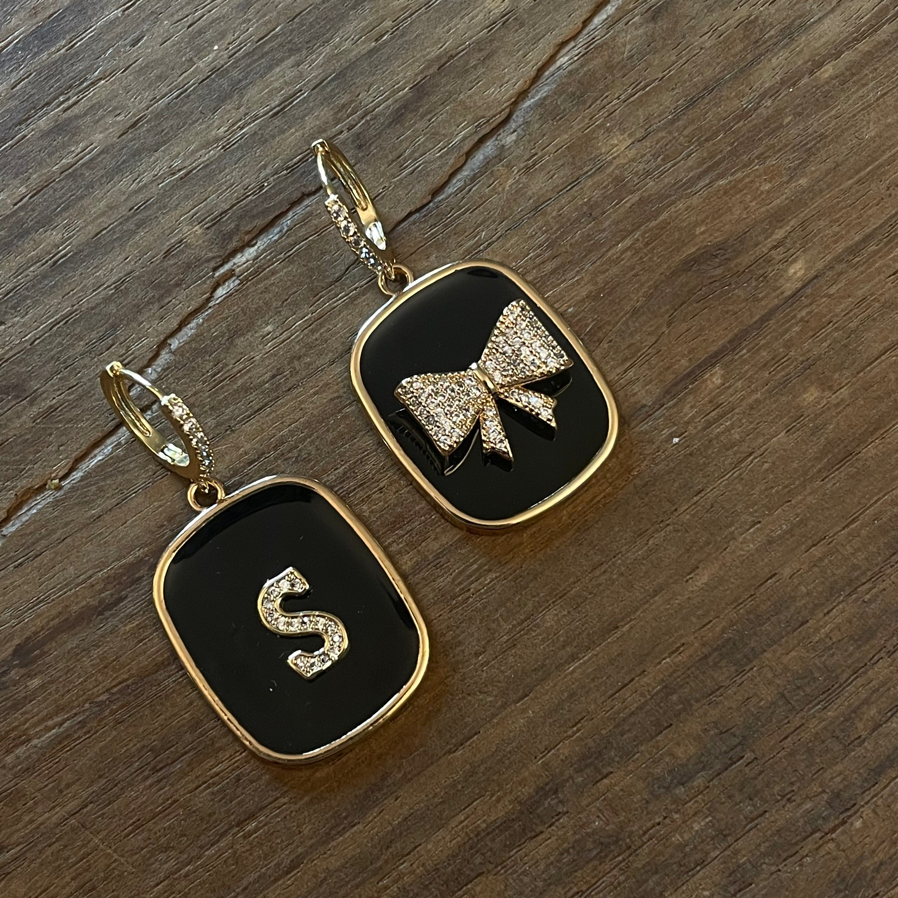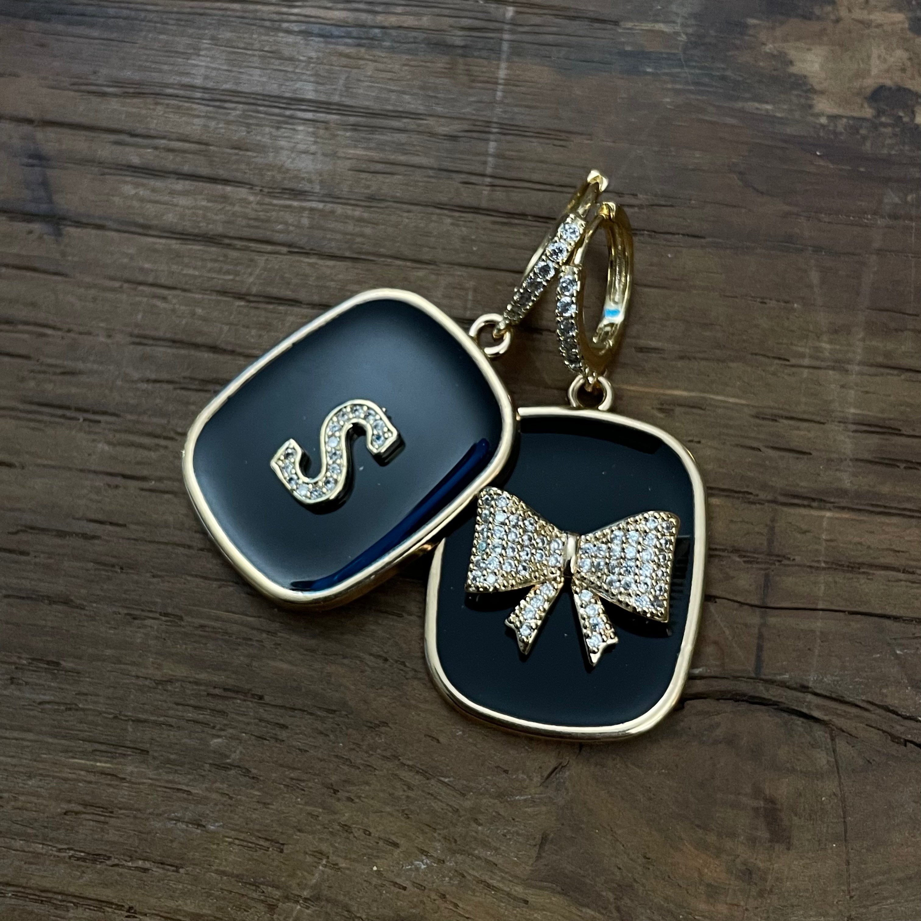 ORECCHINI PIASTRINA NERA con lettere e FIOCCO