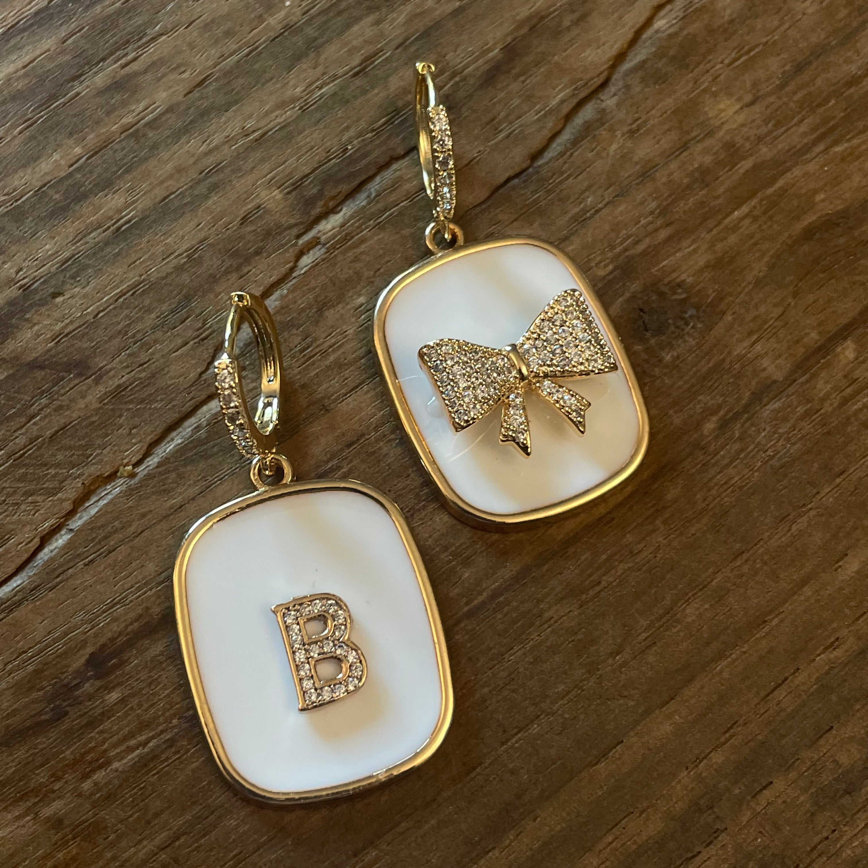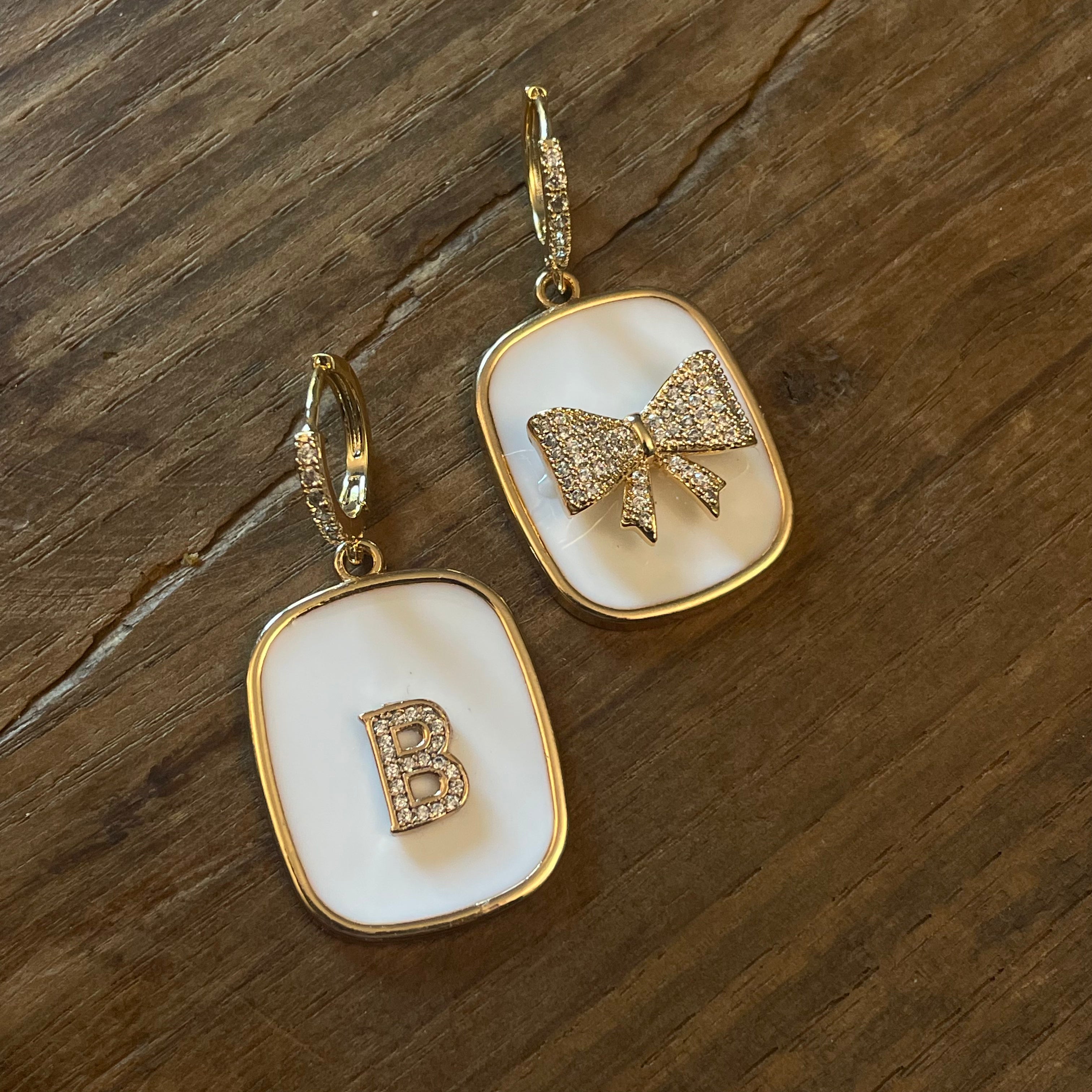 ORECCHINI PIASTRINA BIANCA con lettere e FIOCCO
