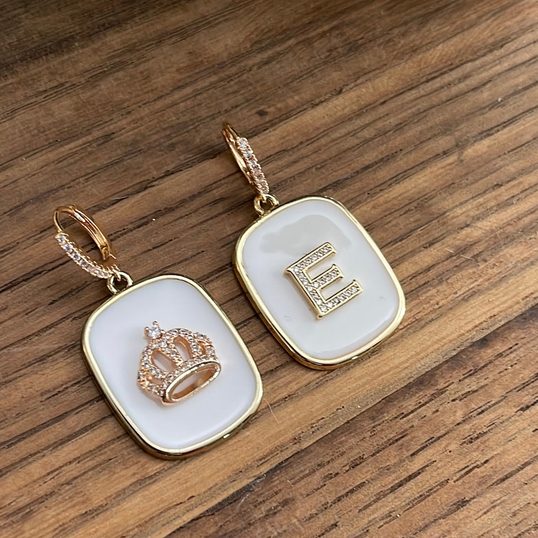 ORECCHINI PIASTRINA TRASPARENTE con lettere e CORONA