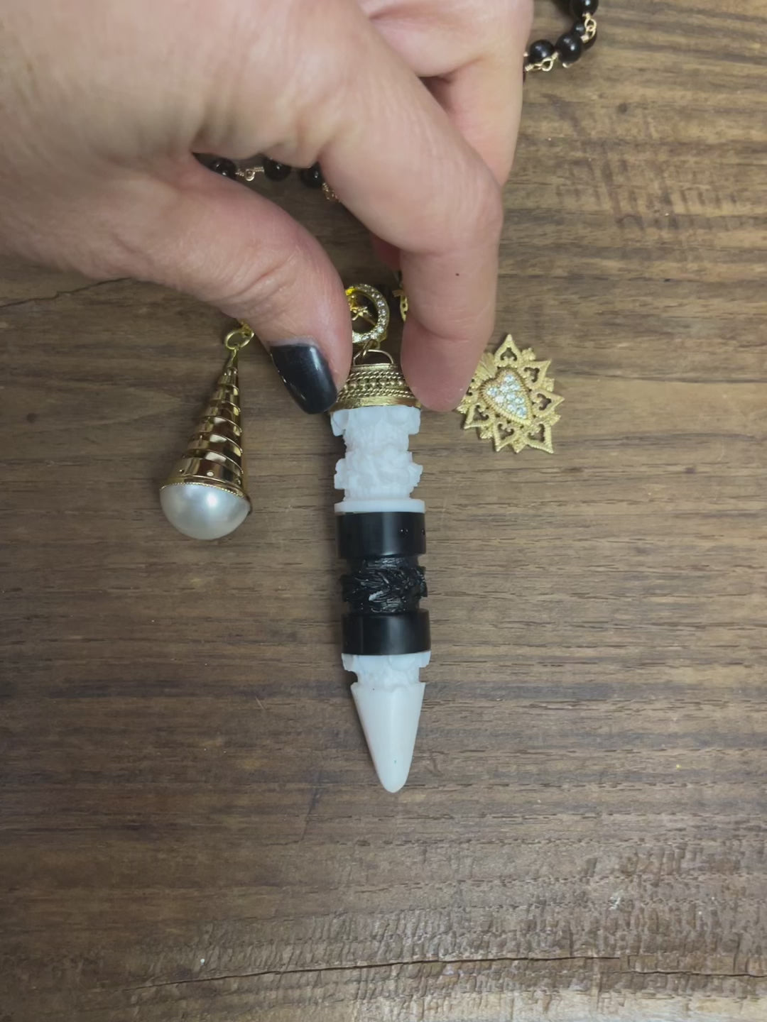 Corno con dettaglio top in zircone e catena in onice lunghezza 90 cm.