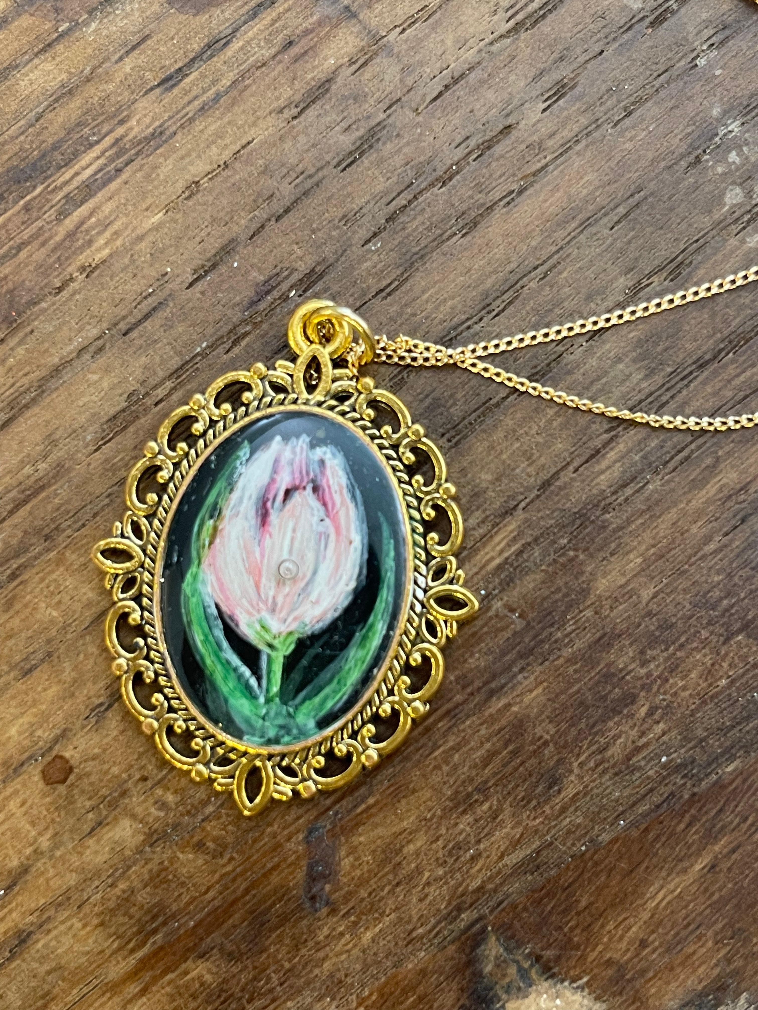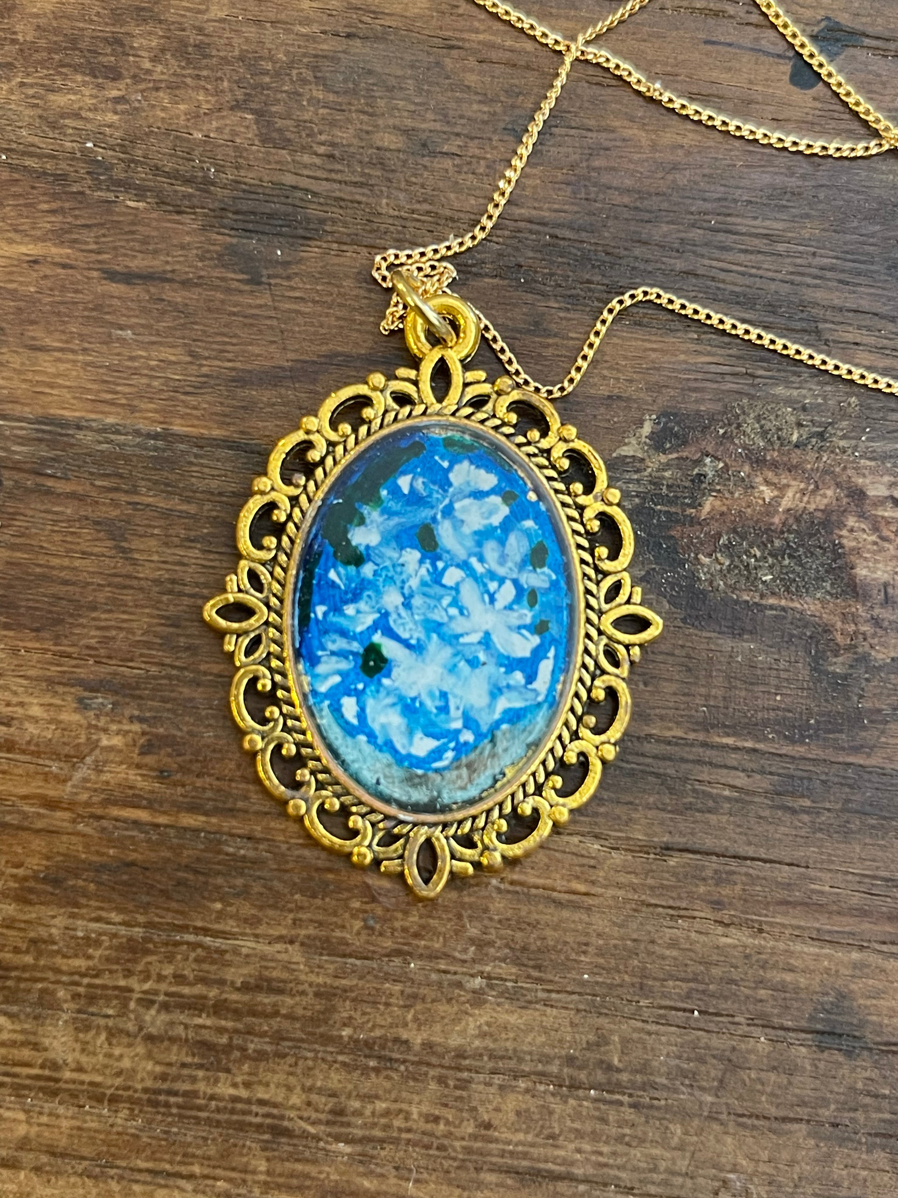L'arte si fonde con la gioia in questi ciondoli montati su una catena in acciaio da 90 cm. Ogni pezzo è un'opera d'arte in miniatura dipinta a mano dall'artista Ambara Chiara Zuccali: fiori, lettere e opere astratte prendono vita in un unico gioiello. Esclusivo e raffinato, il perfetto regalo per chi ama l'arte e la bellezza.